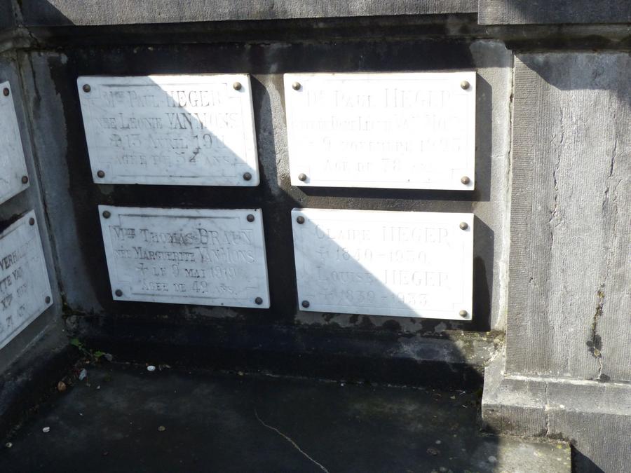 Héger, Paul The graves of Paul Héger (above right) and Louise Héger (under right) at the Cimetière de Watermael-Boitsfort, Brussels.Picture by Androom (27 May 2022)
