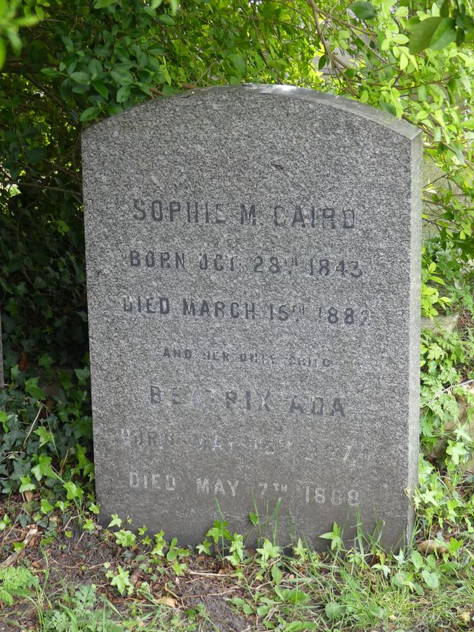 The grave of Sophie Gray at Brompton Cemetery, London.