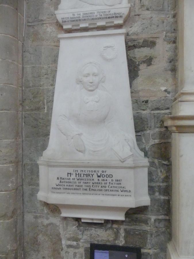Wood, Ellen Cenotaph for Mrs Henry Wood in Worcester Cathedral, Worcester, Worcestershire.Picture by Androom (13 Nov 2025)